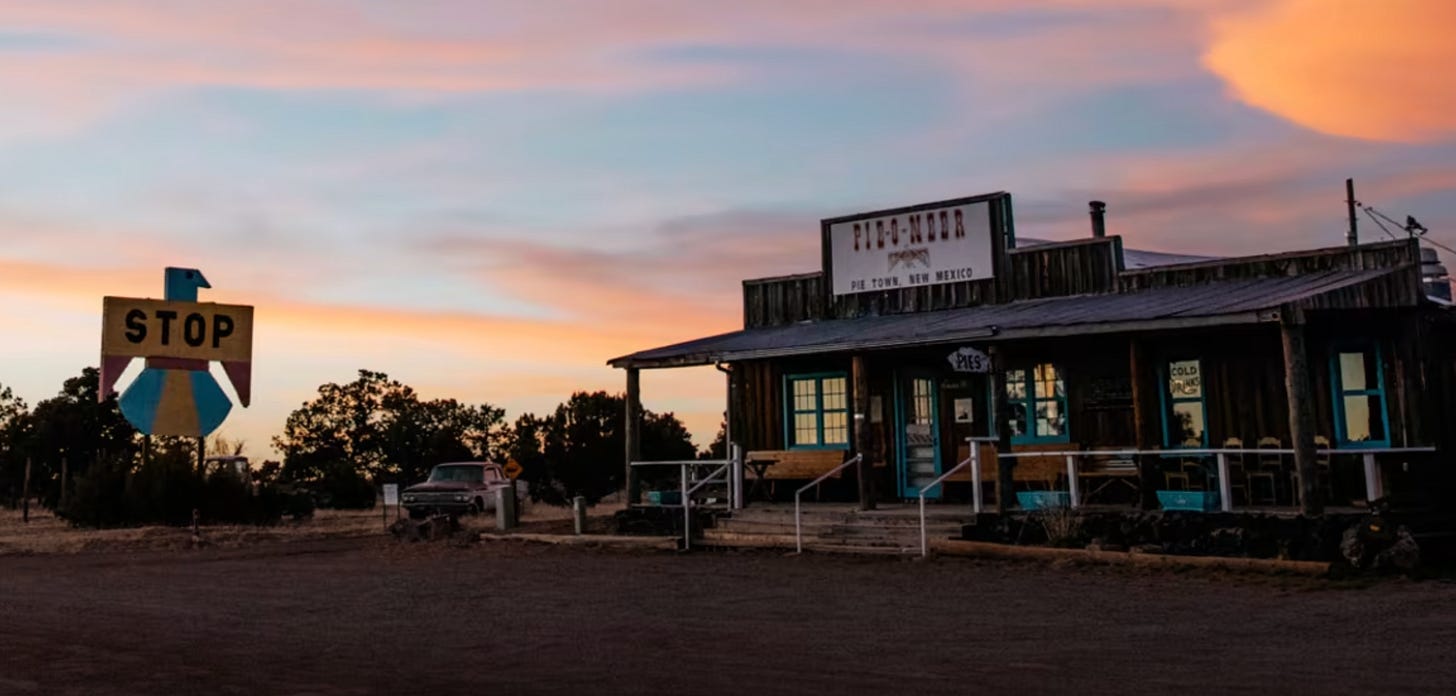 And even when it shows up half awake, thinking about something as ridiculous as Pie Town, it doesn’t feel empty.